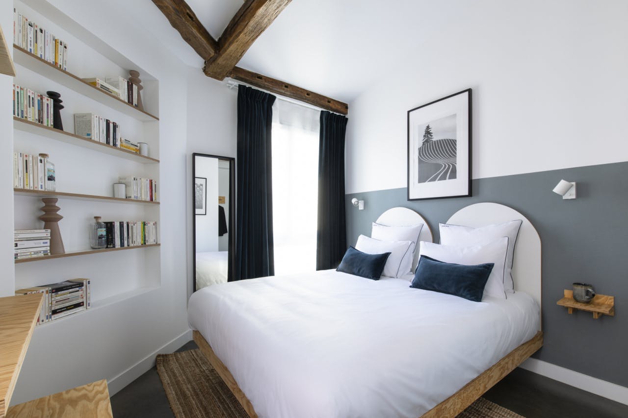 Les chambres Double Economie, 10m², sont lumineuses grâce à leurs emplacements donnant sur la rue.Ces chambres sont dotées d'un grand lit double (160x200 cm), d'un bureau, d'un coin de rangement avec penderie et étagères, d'une table de chevet, de lampes de chevet et liseuses, d'une TV écran plat avec chaînes internationales et sportives, du WiFi. Chambre non accessible aux personnes à mobilité réduite. Nous vous rappelons que les chambres doubles peuvent accueillir deux personnes maximum et qu'il est interdit de loger trois personnes ou plus dans une chambre double.